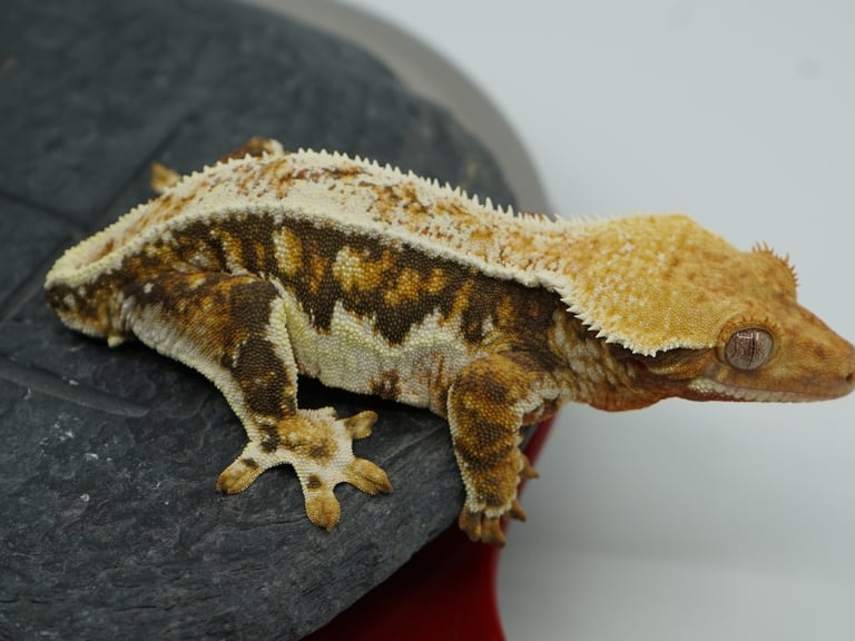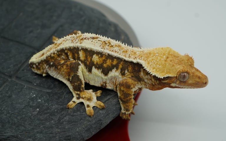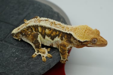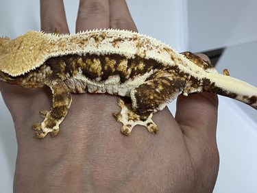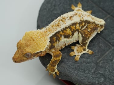 Lineage: Cali-Donia Rhacs out of: Heart Shaped Box: Produced by Crowned Cresties x Crestie King / Out of Captain Fantastic-Crowned Cresties x Ambilobe- Produced by Eddie Putnam out of Chomper x Venus ****Captain Fantastic and Ambilobe both now owned by Crimson Cresties***) x Supercali (Lilly Exotics Production